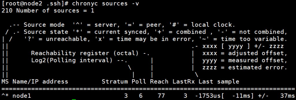[root@node2 ~]# chronyc sources -v