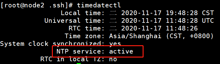 NTP service:active 时间同步服务已经处于活跃状态。