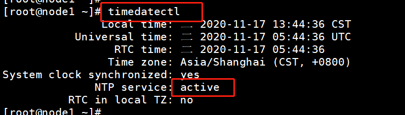 [root@node1 ~]# timedatectl