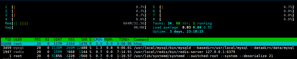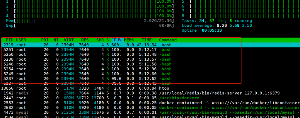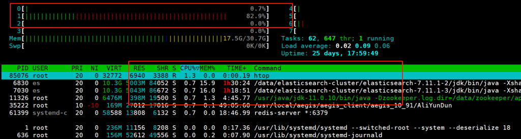 在使用htop命令的时候就可以发行,正在运行的挖矿进程了。
