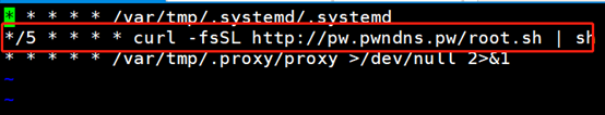 通过脚本是可以看到,挖矿病毒运行以后自动删除当前脚本的,所以就出现前面那个在/proc/pid/exe中指引的目录被删除。这里的操作是将/var/tmp目录中的文件全部删除。并将crontab中的定时任务中包含挖矿任务全部删除。
