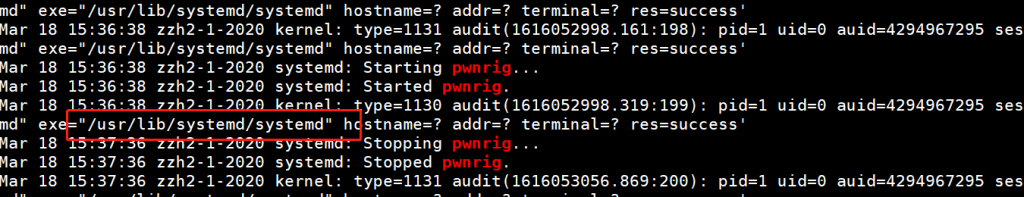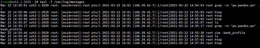 其中也不用一直盯着日志 也可以用过命令进行检索 tail -f /var/log/messages | grep pwnrig(需要检索的信息)
